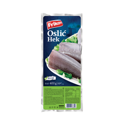 Frikom oslić odledite, posolite, uvaljajte u brašno i pecite u prethodno zagrejanoj rerni na 180 stepeni 15-20 minuta (dok ne porumeni).