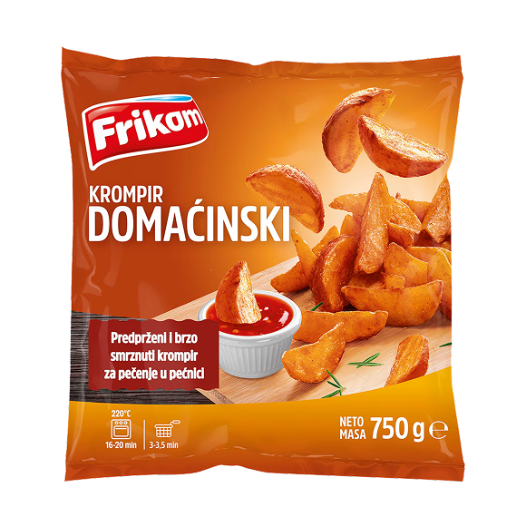 Uživaj u neodoljivom domaćinskom ukusu uz Frikom začinjene krompiriće, pripremljene od neoljuštenih kriški krompira. Svaka kriška je delimično pržena, nežno začinjena i odmah brzo smrznuta kako bi zadržala savršenu teksturu i ukus.
