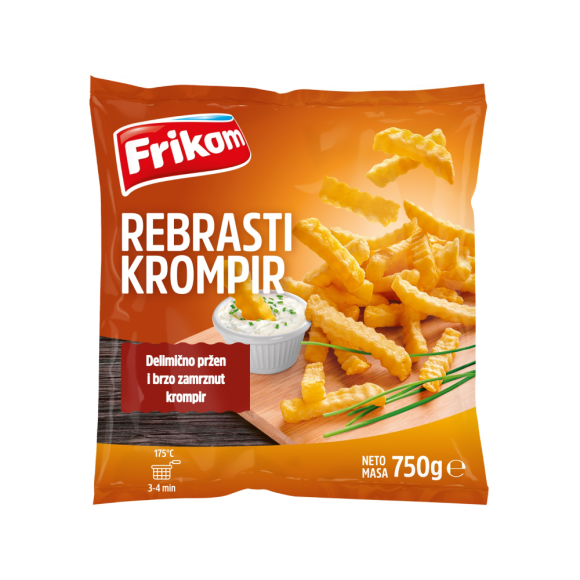 Rebrasti pomfrit je novi oblik ukusnog obroka za celu porodicu! Pun tanjir ukusnih zalogaja koji su idealno posluženje za svaku priliku. Napravljen od biranih sorti vrlo kvalitetnog krompira i jednostavan je za pripremu. Odlično će se uklopiti kao prilog uz mesna jela, prženu ribu, ali može se poslužiti i kao odličan snack uz različite umake na dečjim rođendanima ili okupljanjima sa dragim prijateljima.