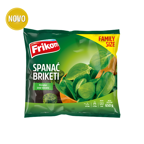 Frikom Spanać u briketima je veoma praktičan i jednostavan za pripremu, a dostupan je tokom cele godine.