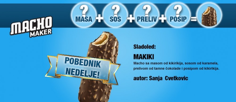 U drugoj nedelji sladolednog konkursa "Macho Maker", najviše "lizova" je dobila Macho kombinacija "Makiki", autora Sanja Cvetković. Čestitamo na glasovima i na osvojenom sladolednom poklonu!