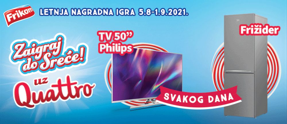 Učestvujte u Frikom letnjoj nagradnoj igri “Zaigraj do sreće uz Quattro” koja će trajati u periodu od 05.08. do 01.09.2021. godine.