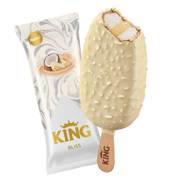 KING Bliss donosi jednostavan spoj kokosa, vanile i hrskavih slojeva za pravo tropsko osveženje. Pronađite i druge KING sladolede na linku.