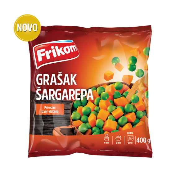 Kombinaciju ove dve najpopularnijih sorti povrća možete iskoristiti za pripremu različitih ukusnih salata, čorbi ili kreativnih priloga. Frikom mešavina grašak šargarepa skratiće vreme pripreme za ukusna jela, a ujedno je dostupna tokom cele godine.